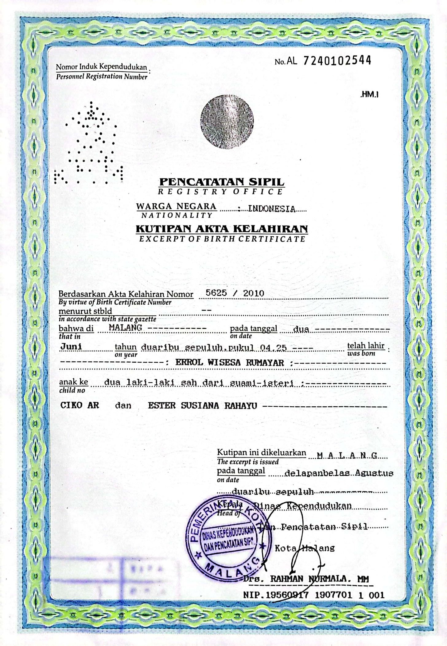 Akta Kelahiran :