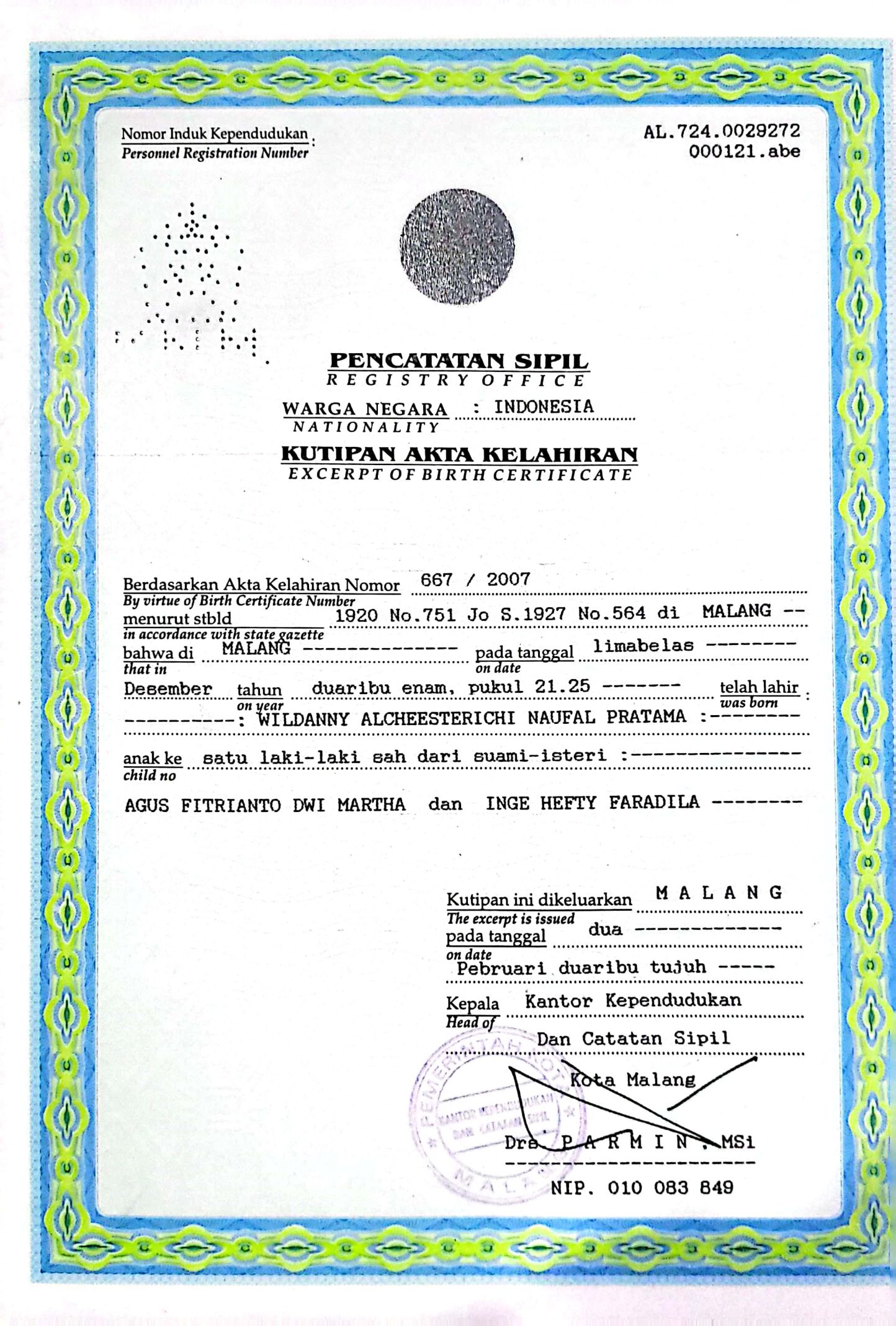 Akta Kelahiran :