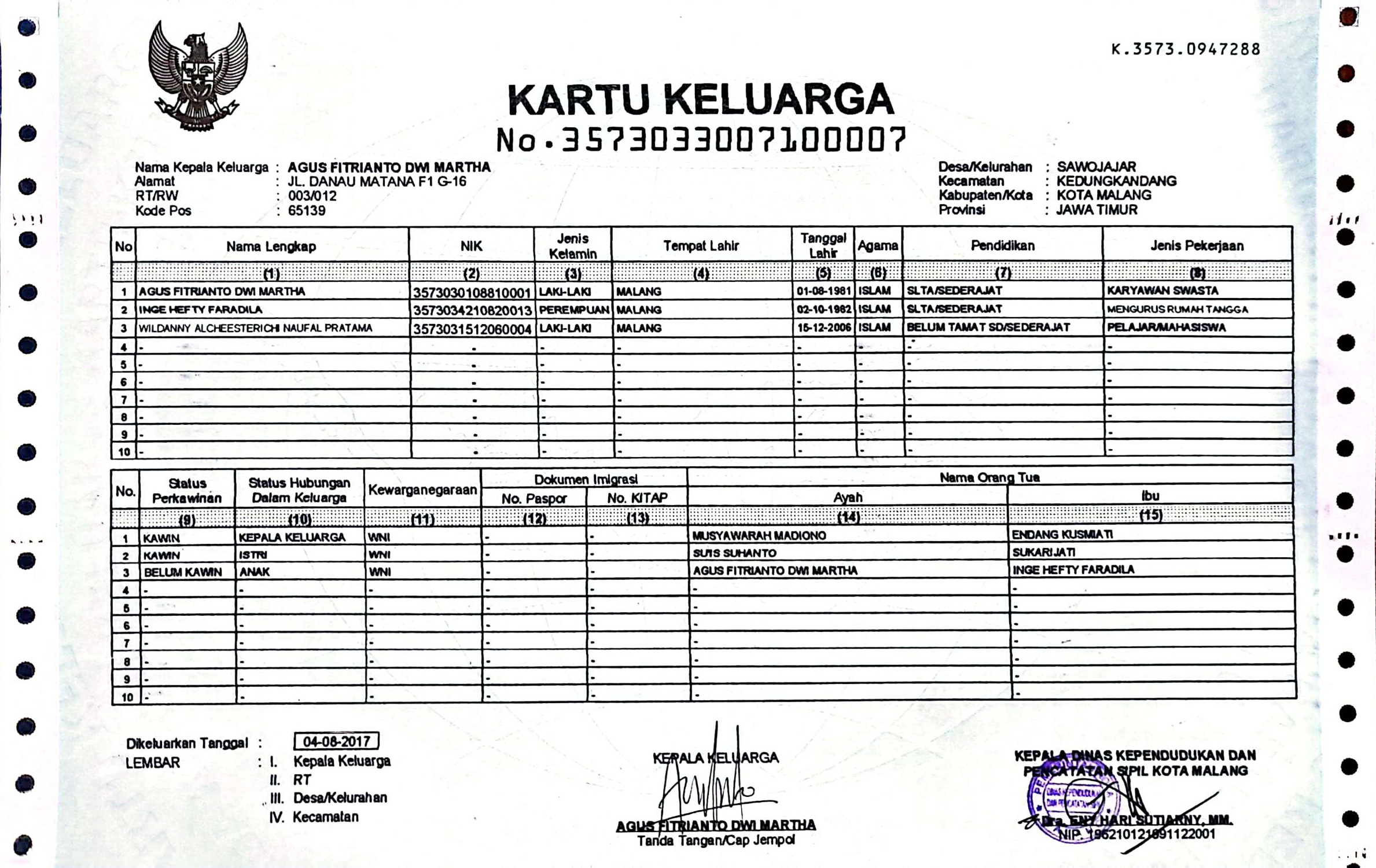 Kartu Keluarga :