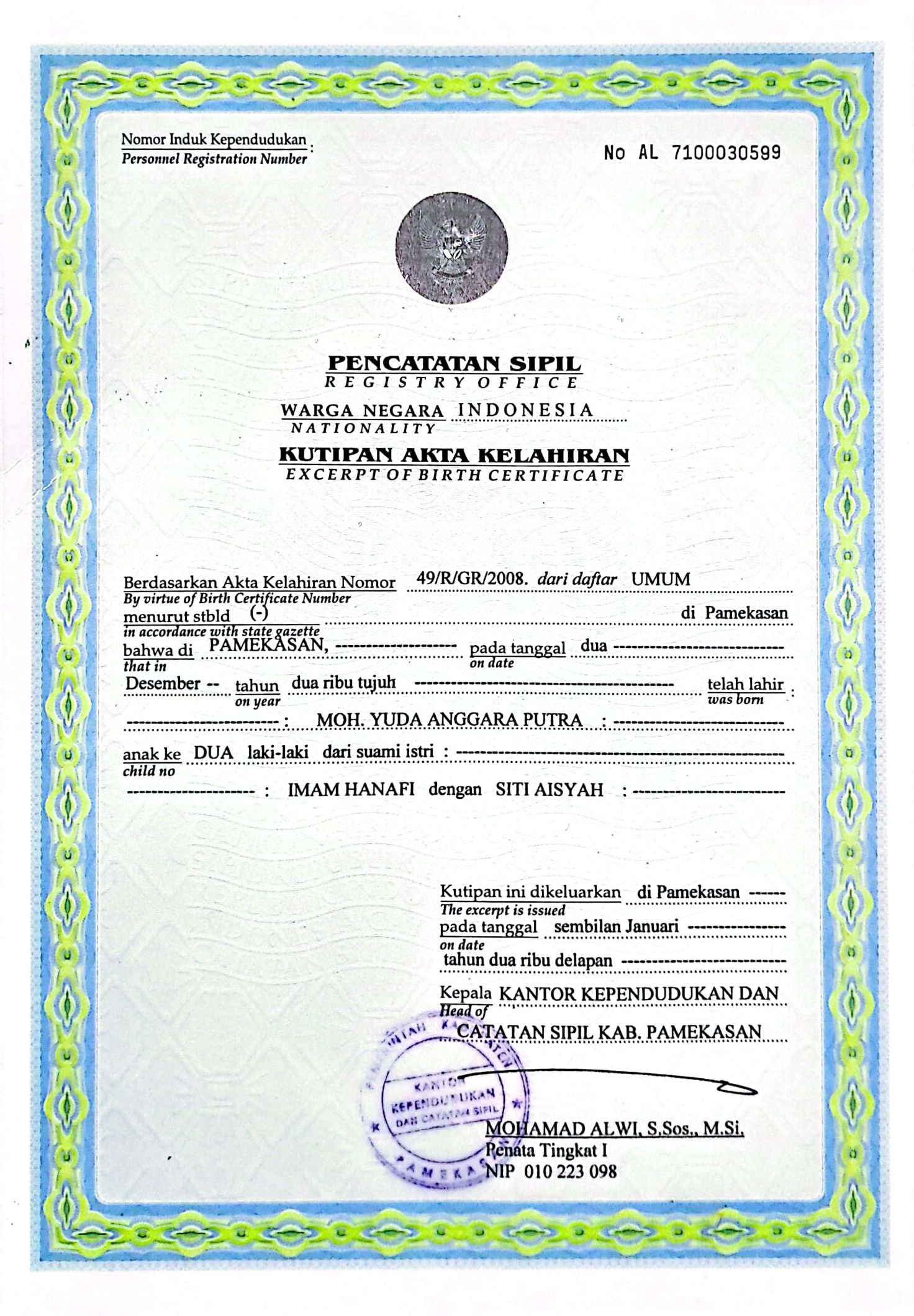 Akta Kelahiran :