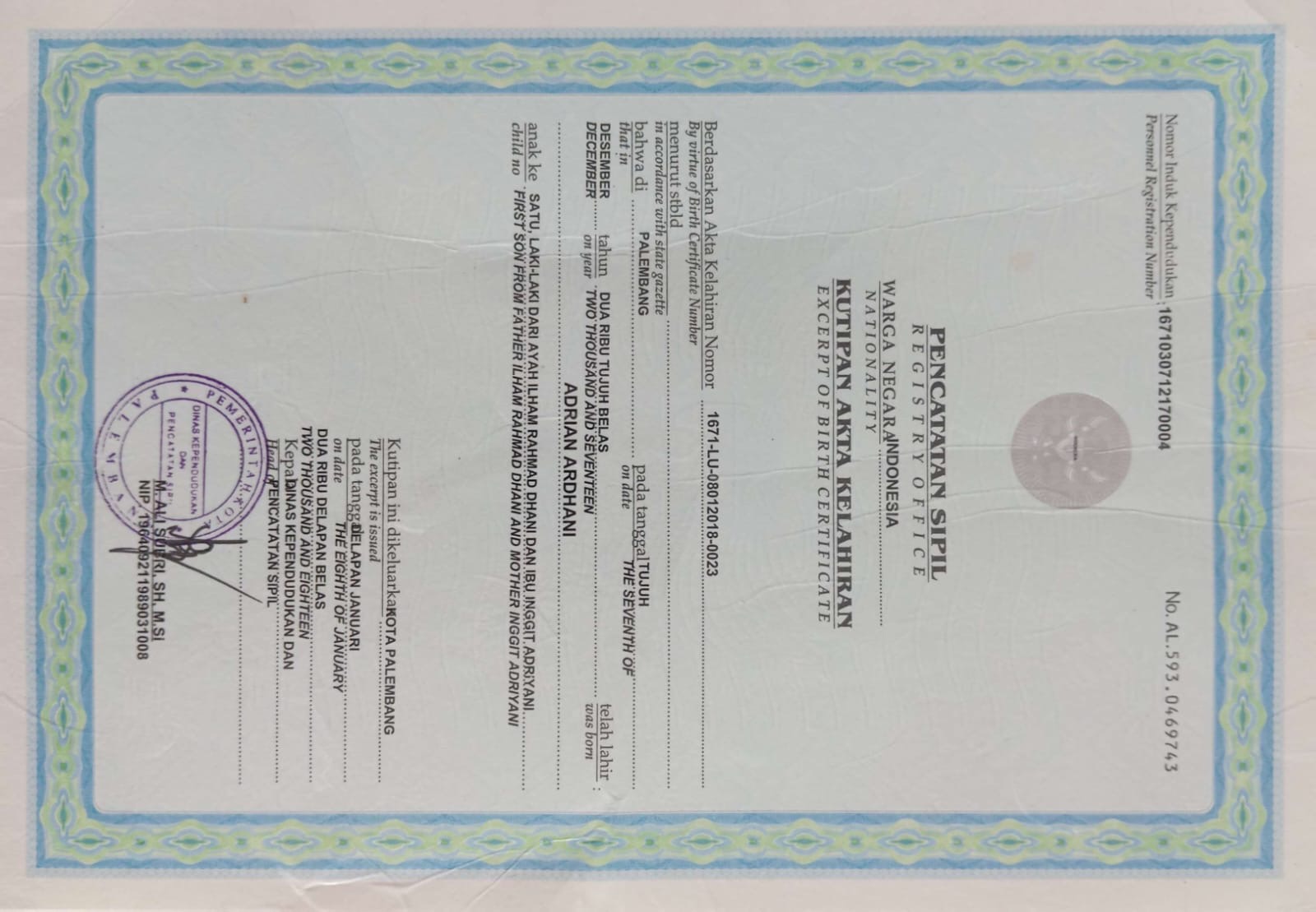 Akta Kelahiran :