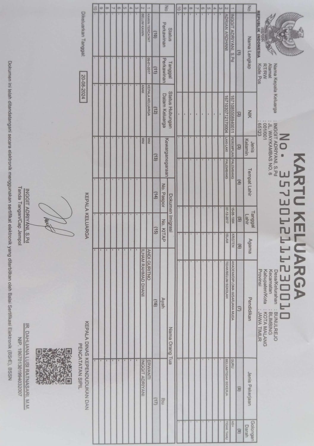 Kartu Keluarga :