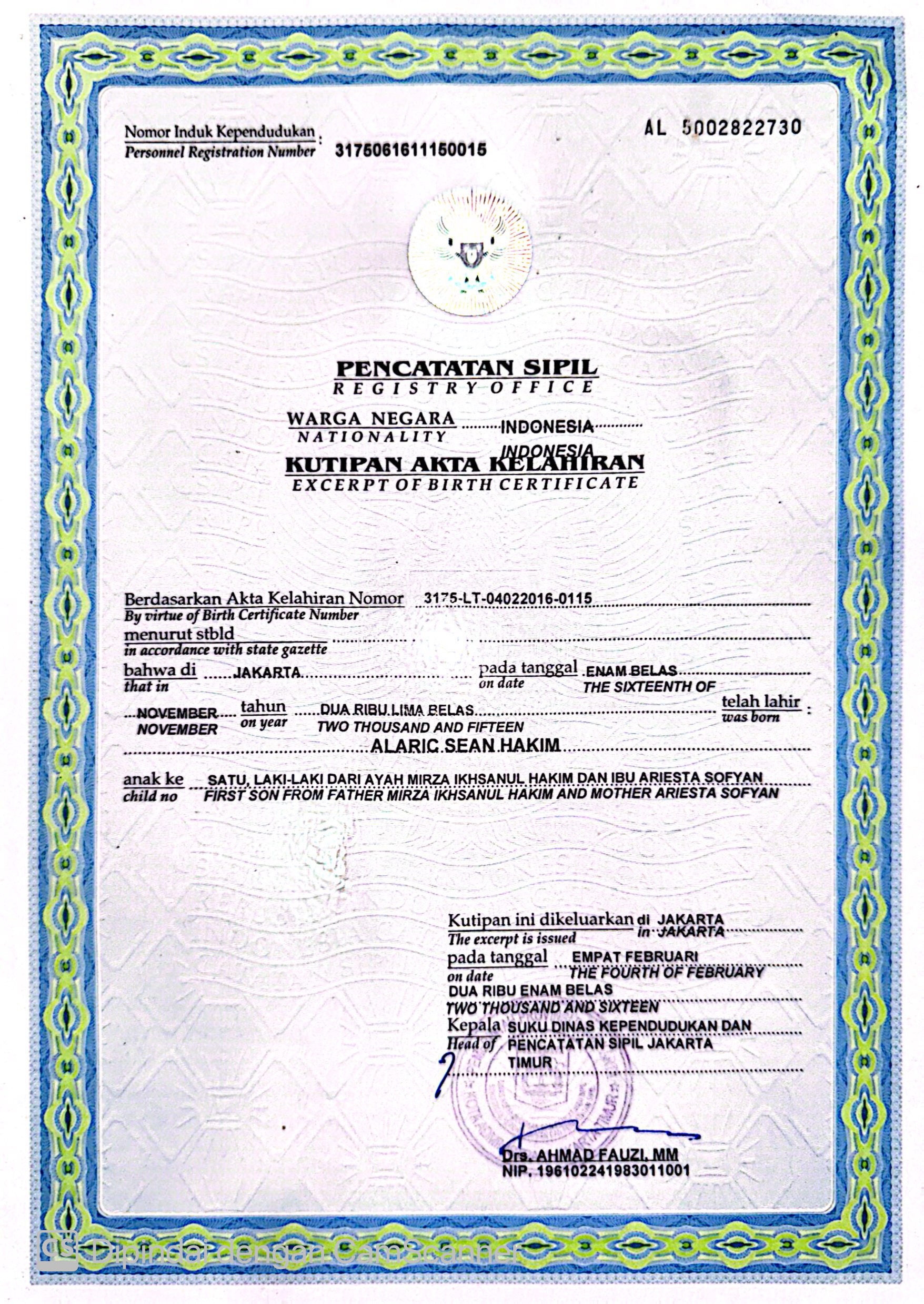 Akta Kelahiran :