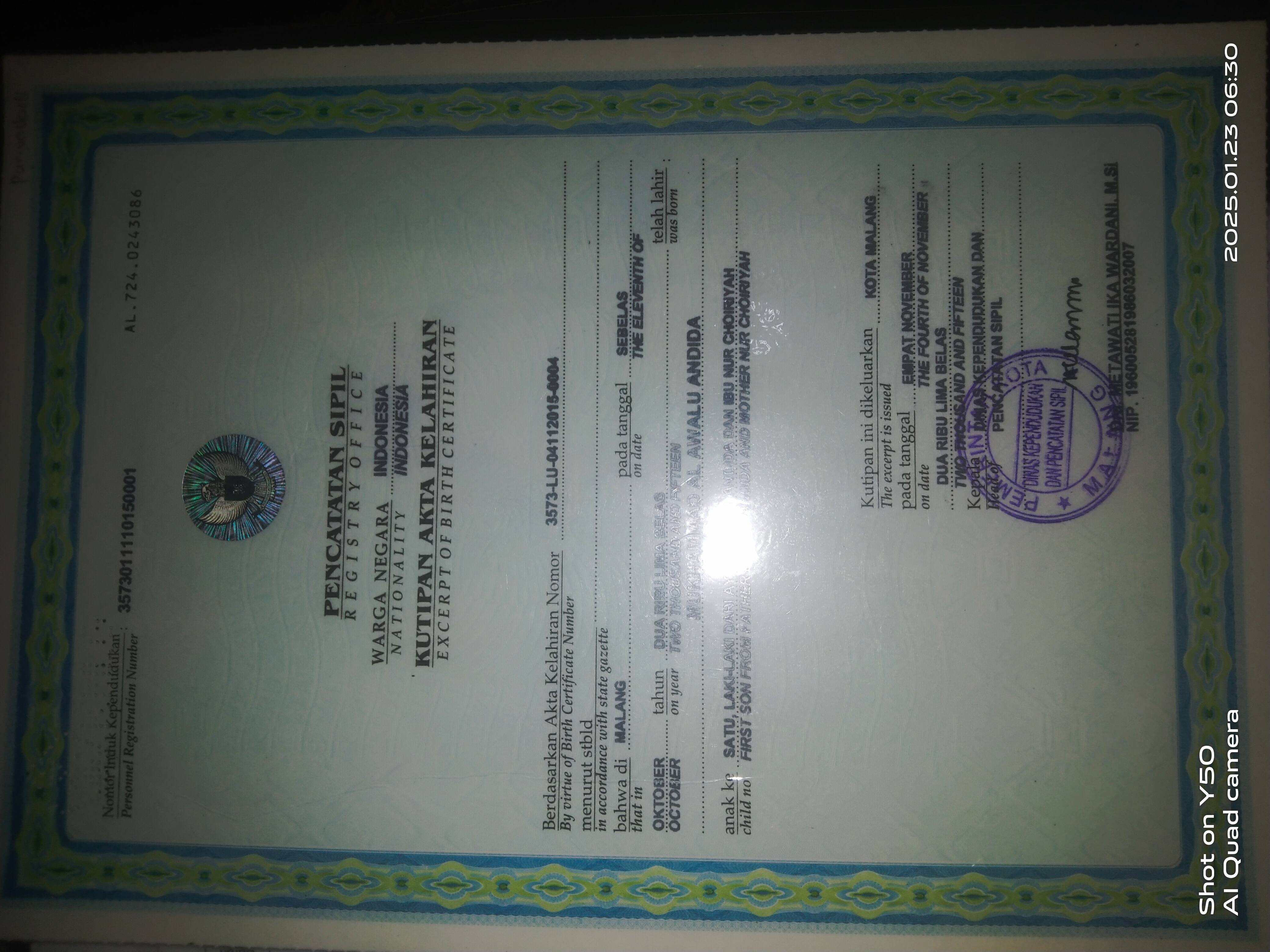Akta Kelahiran :