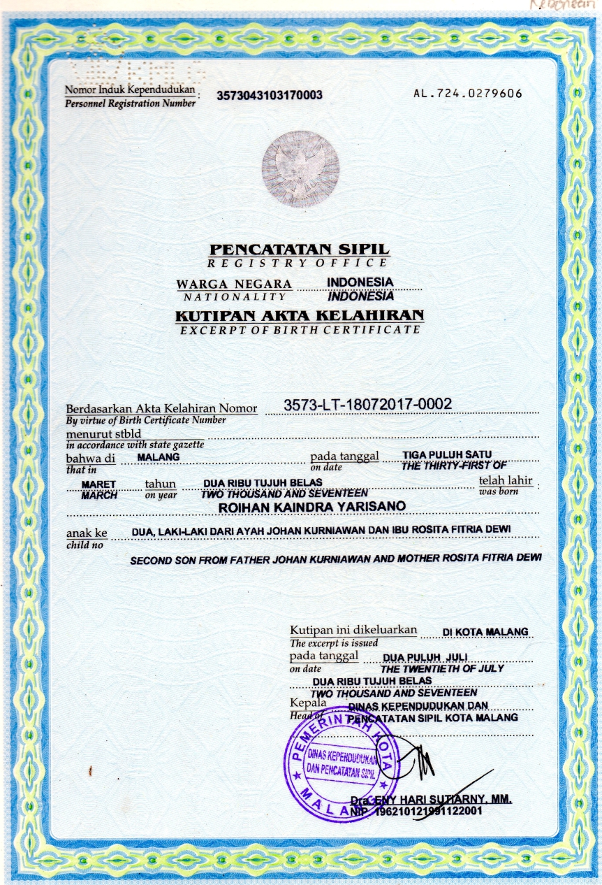 Akta Kelahiran :