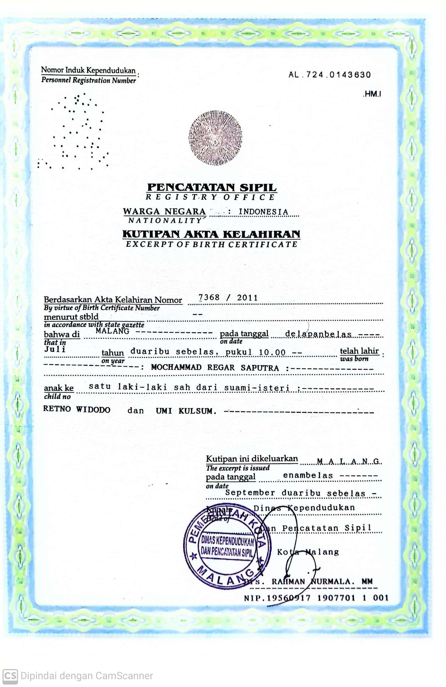 Akta Kelahiran :