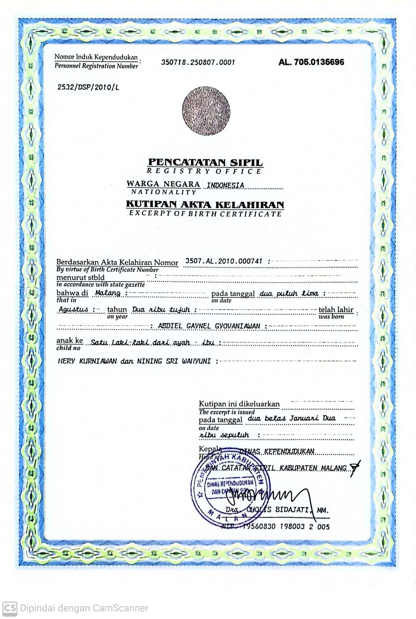 Akta Kelahiran :