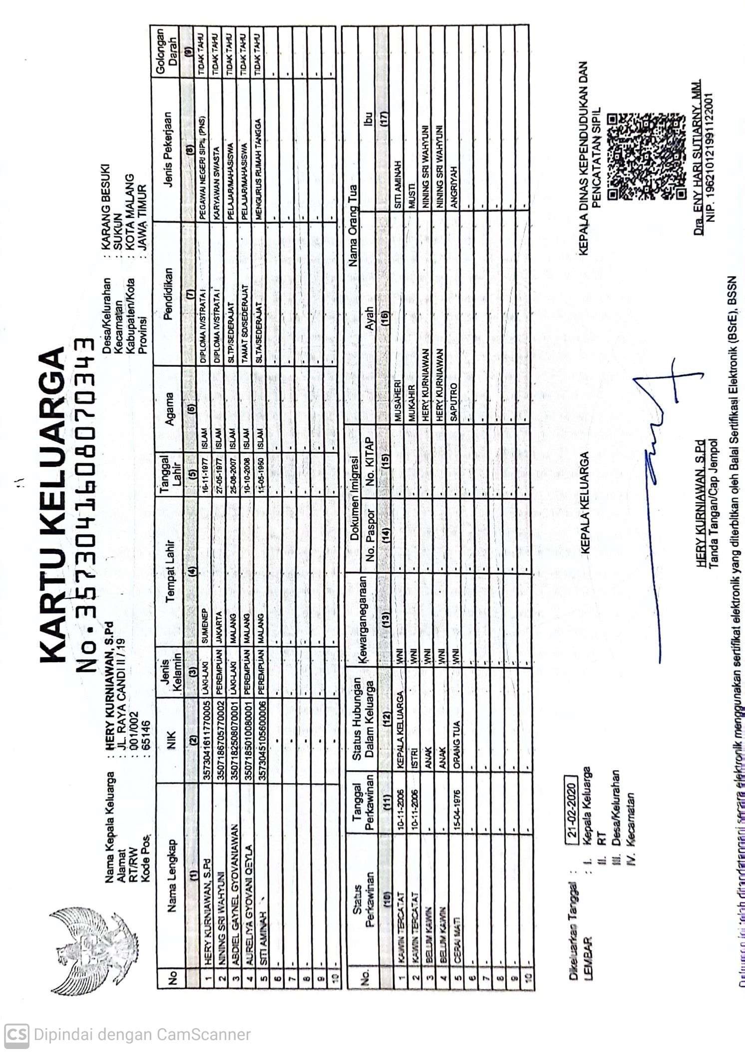 Kartu Keluarga :