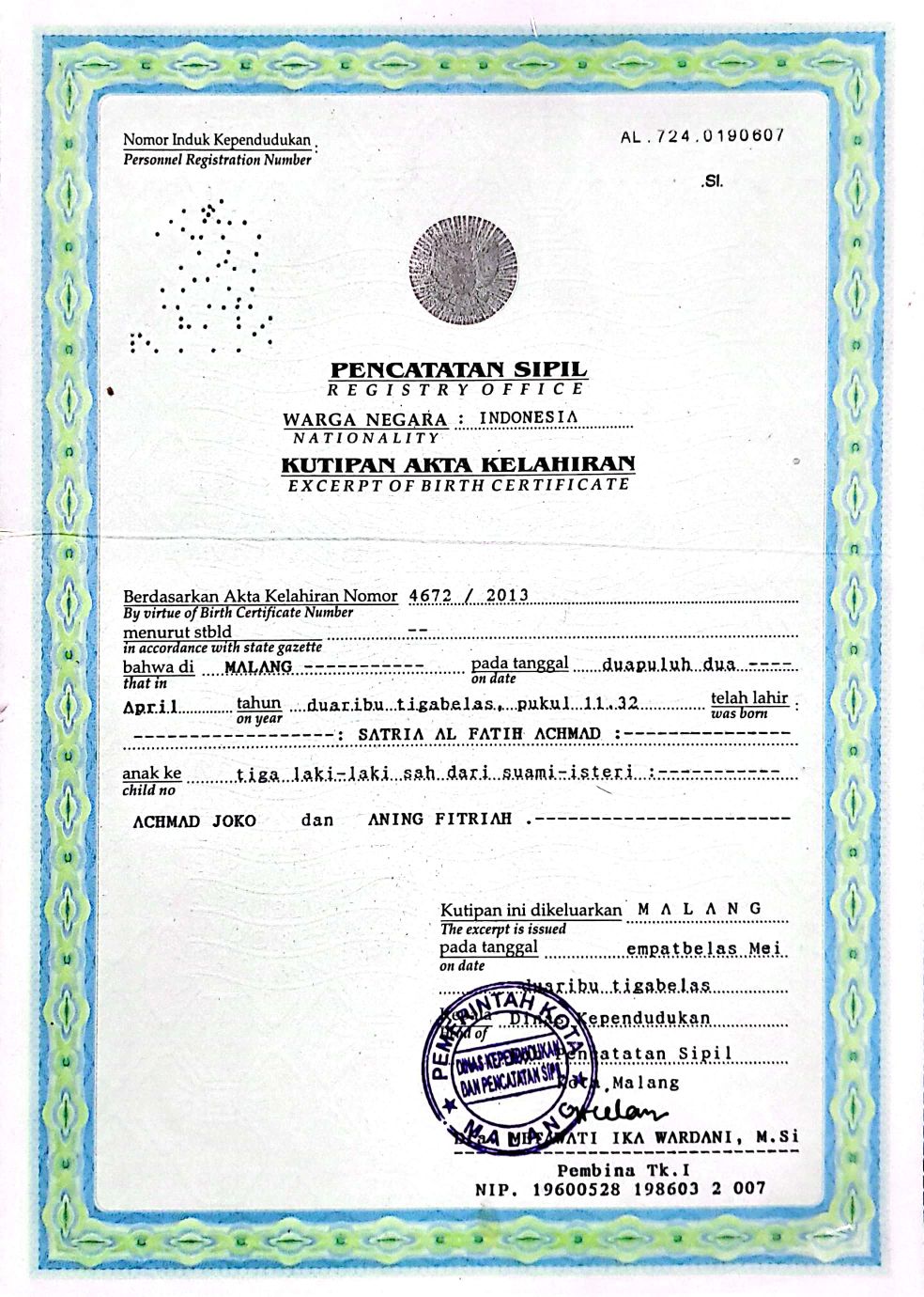 Akta Kelahiran :