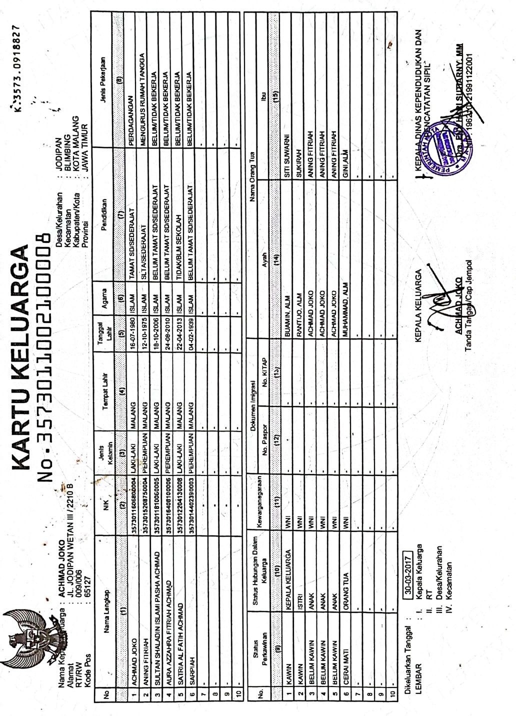 Kartu Keluarga :