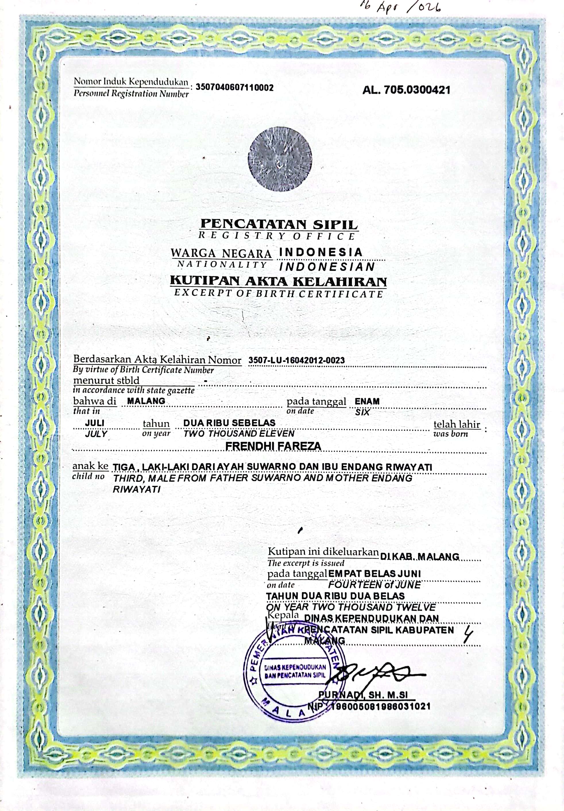 Akta Kelahiran :