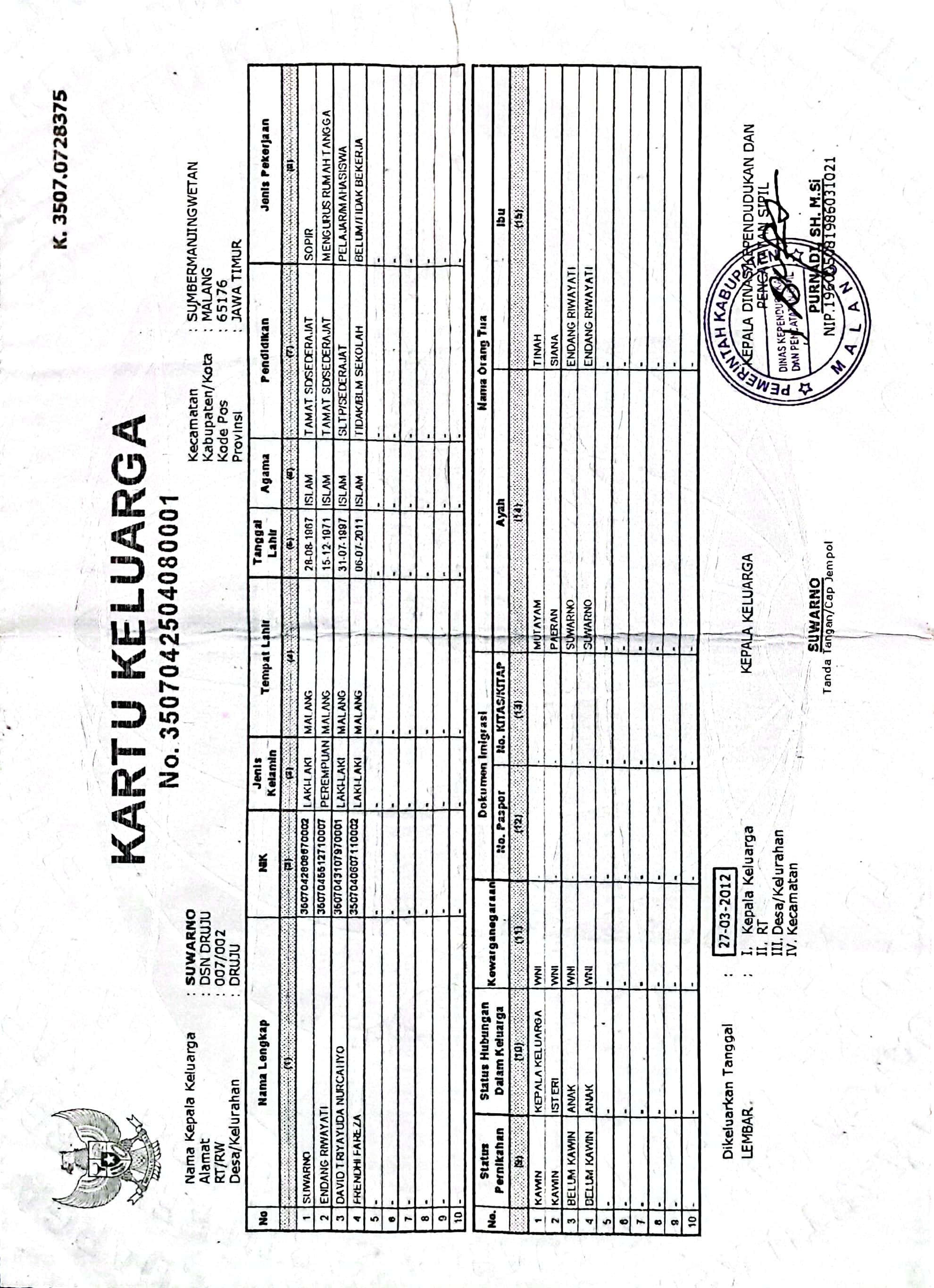 Kartu Keluarga :