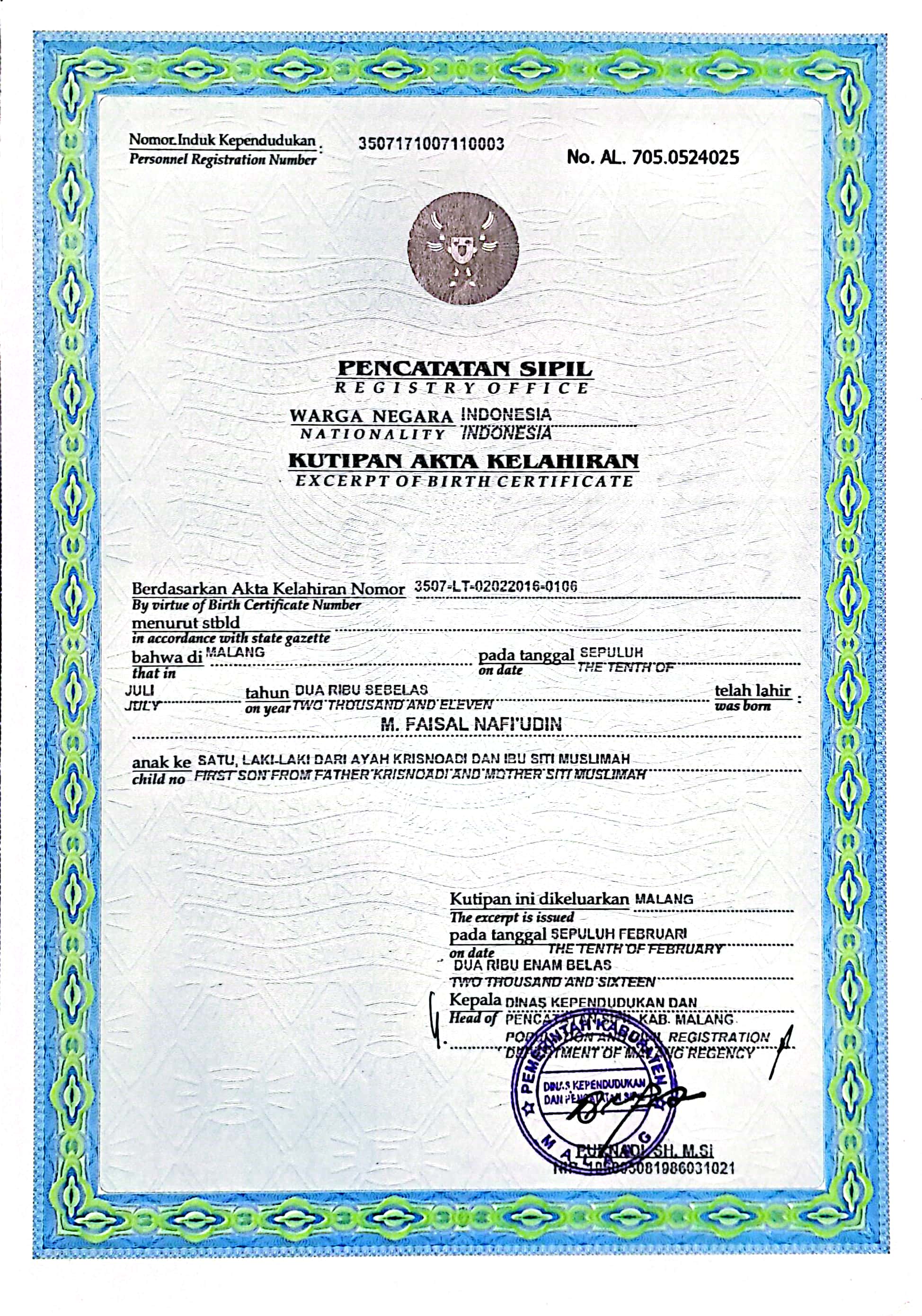 Akta Kelahiran :