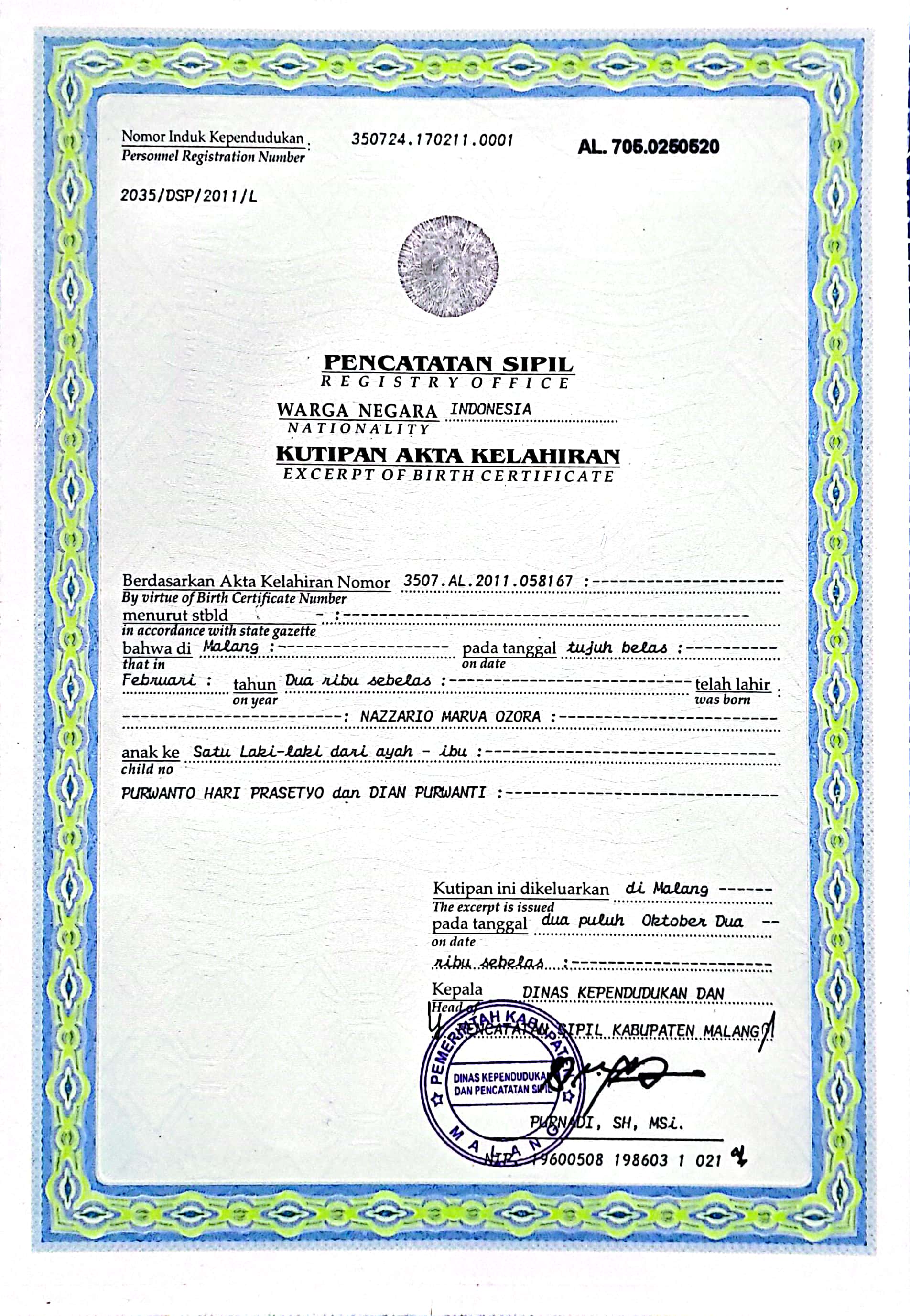 Akta Kelahiran :