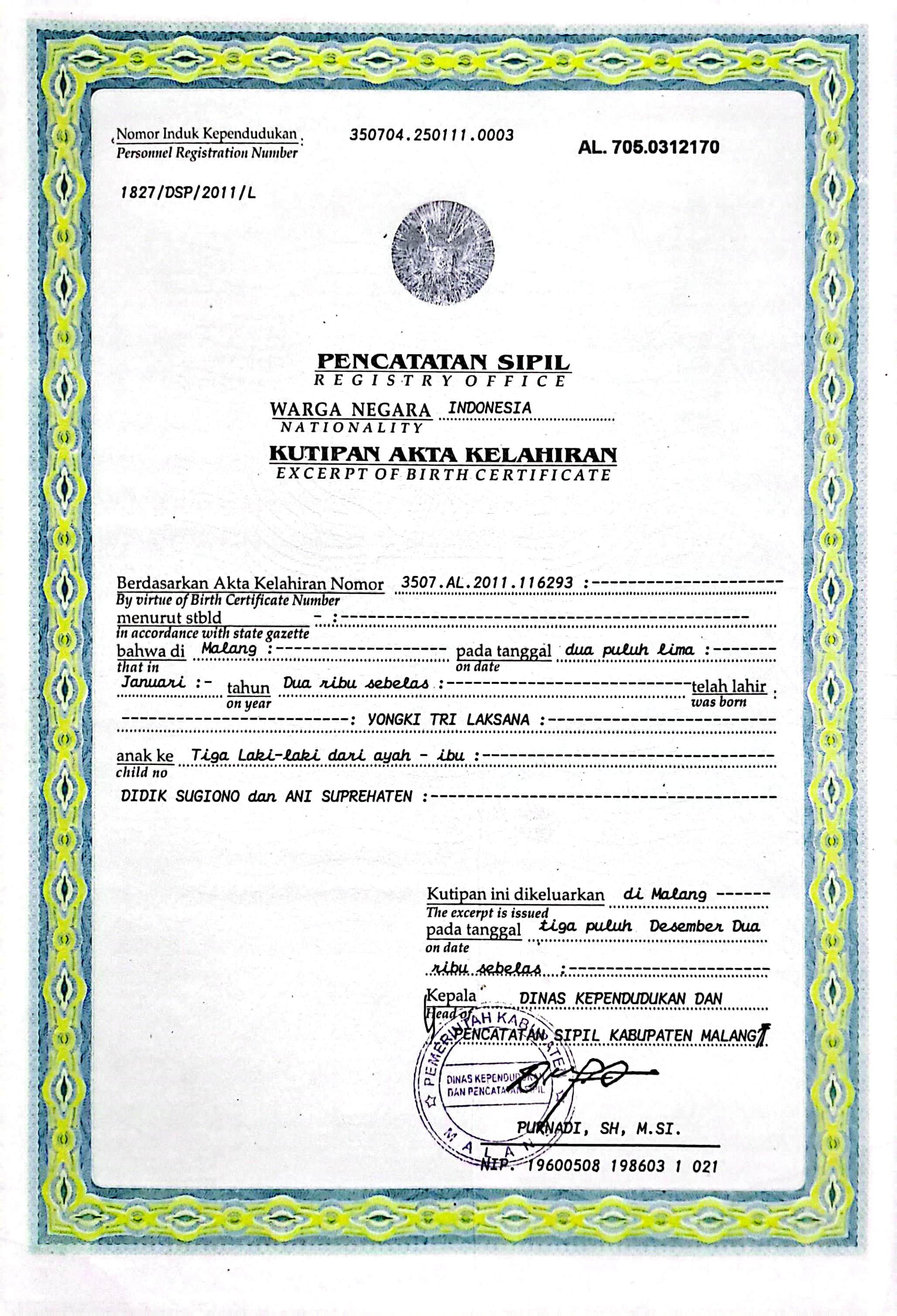 Akta Kelahiran :