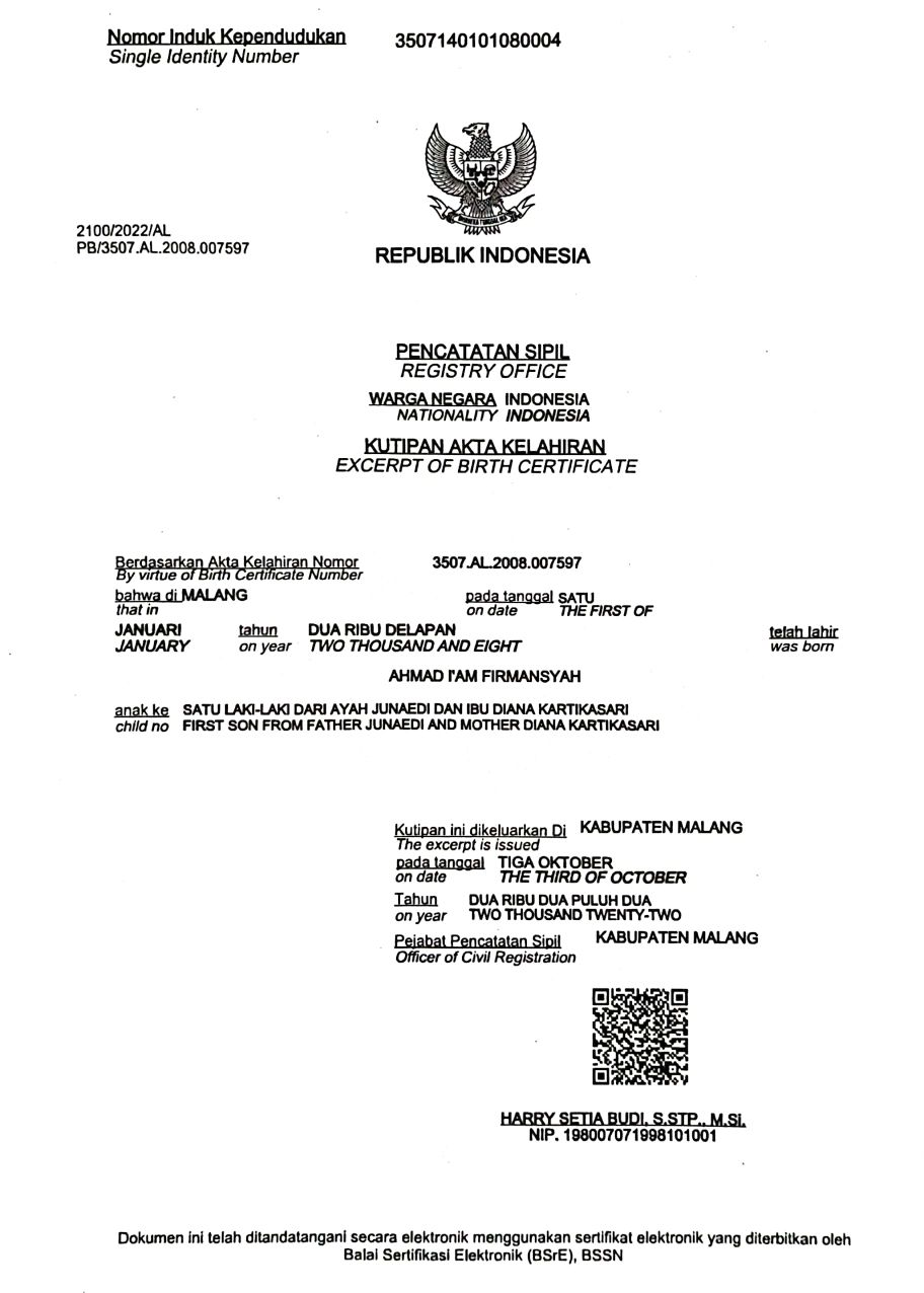 Akta Kelahiran :