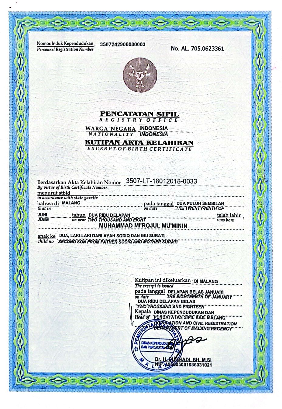 Akta Kelahiran :