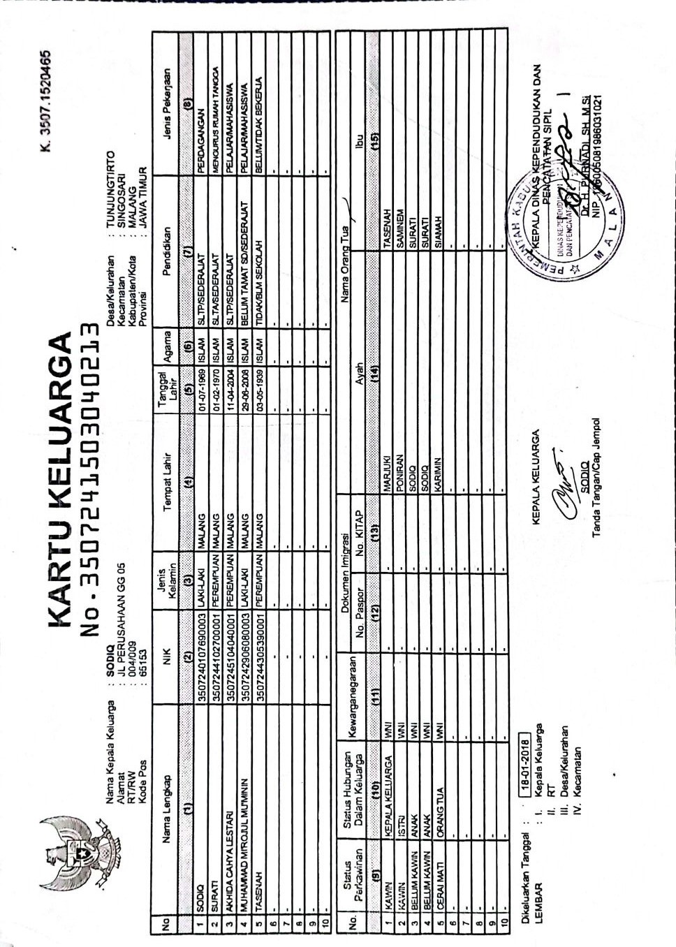 Kartu Keluarga :