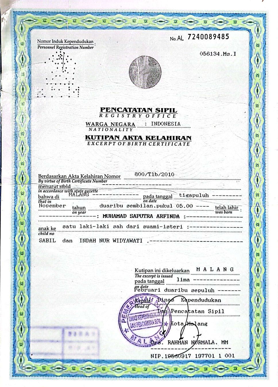 Akta Kelahiran :
