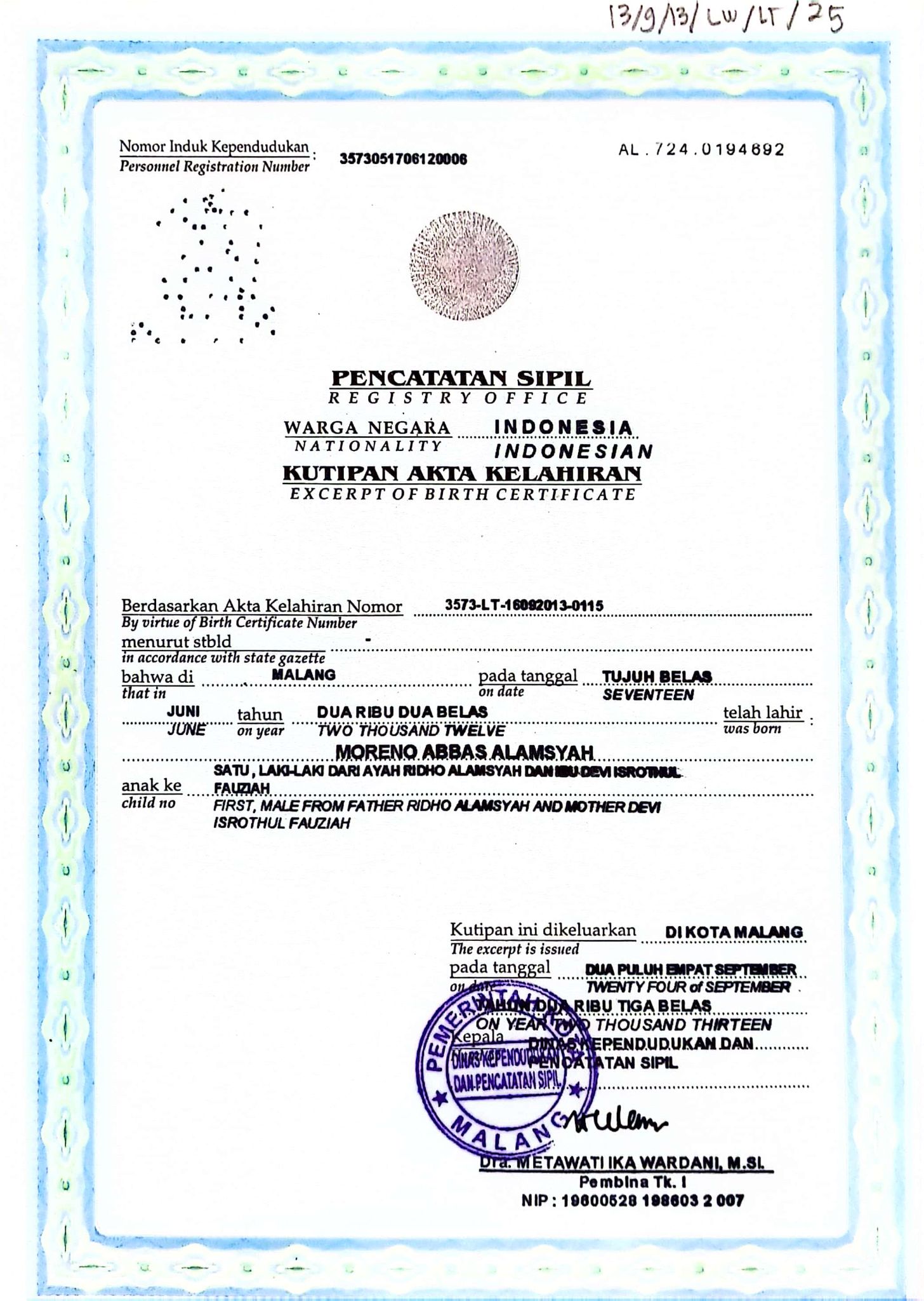 Akta Kelahiran :