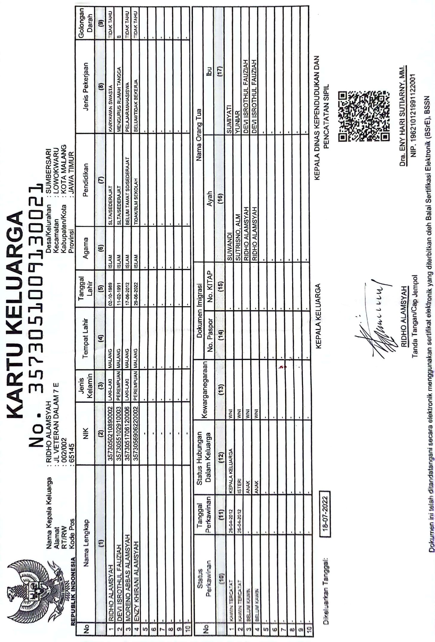 Kartu Keluarga :