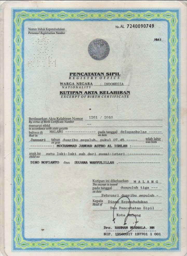 Akta Kelahiran :