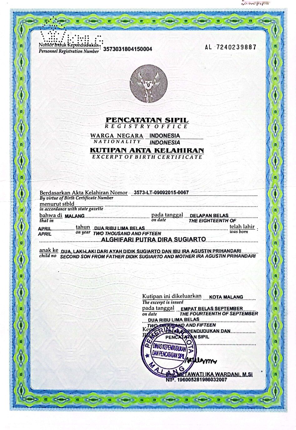 Akta Kelahiran :