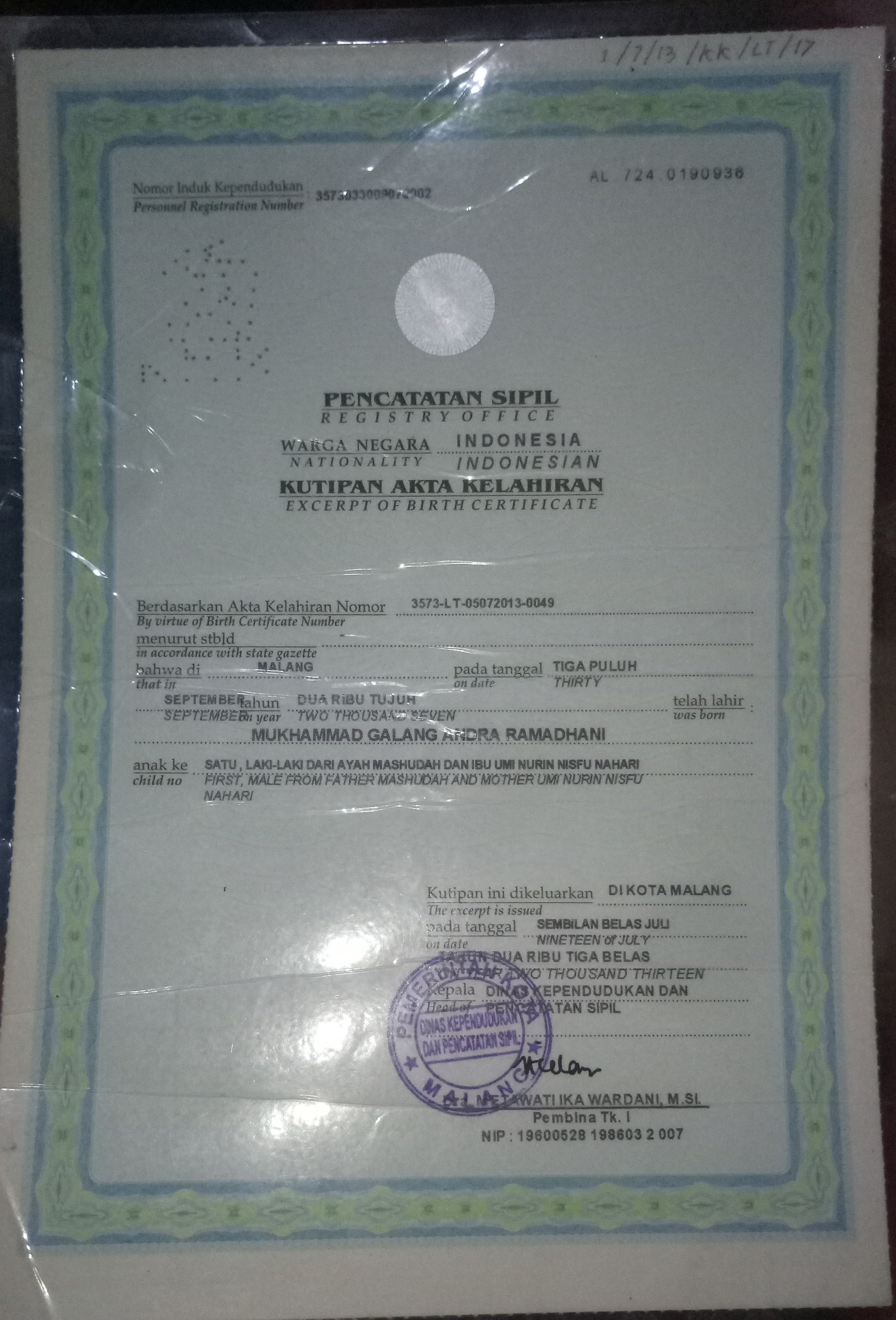 Akta Kelahiran :