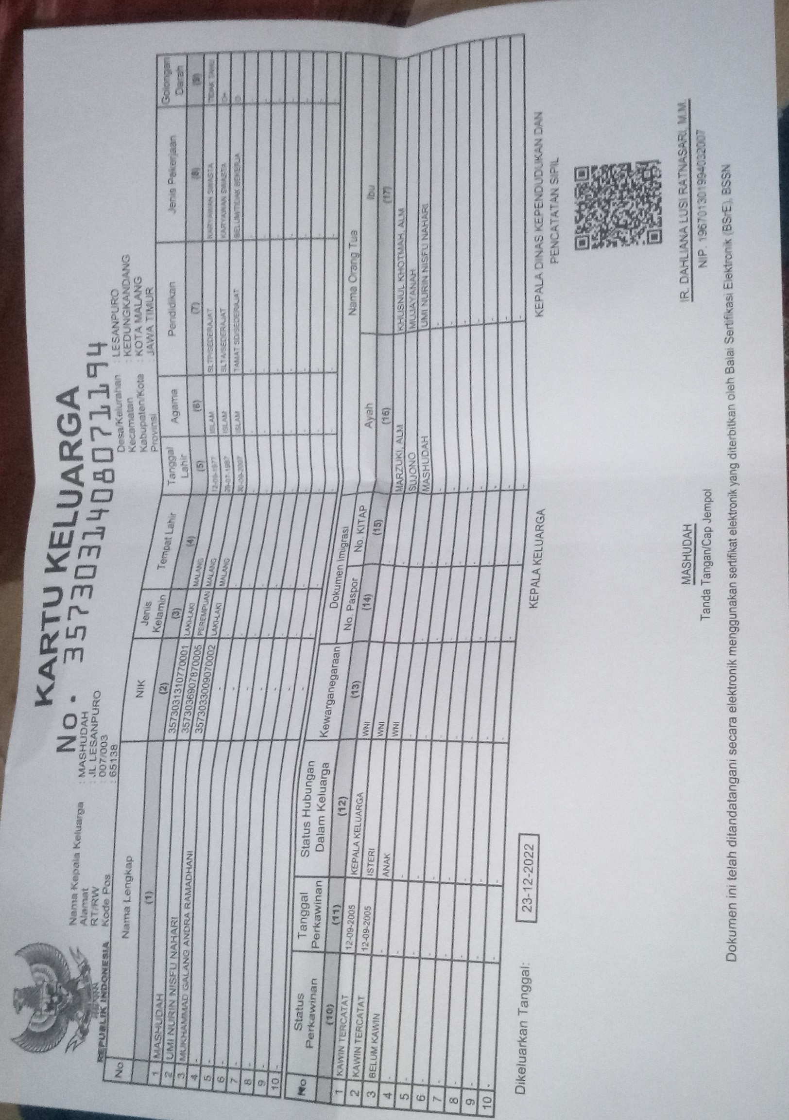 Kartu Keluarga :